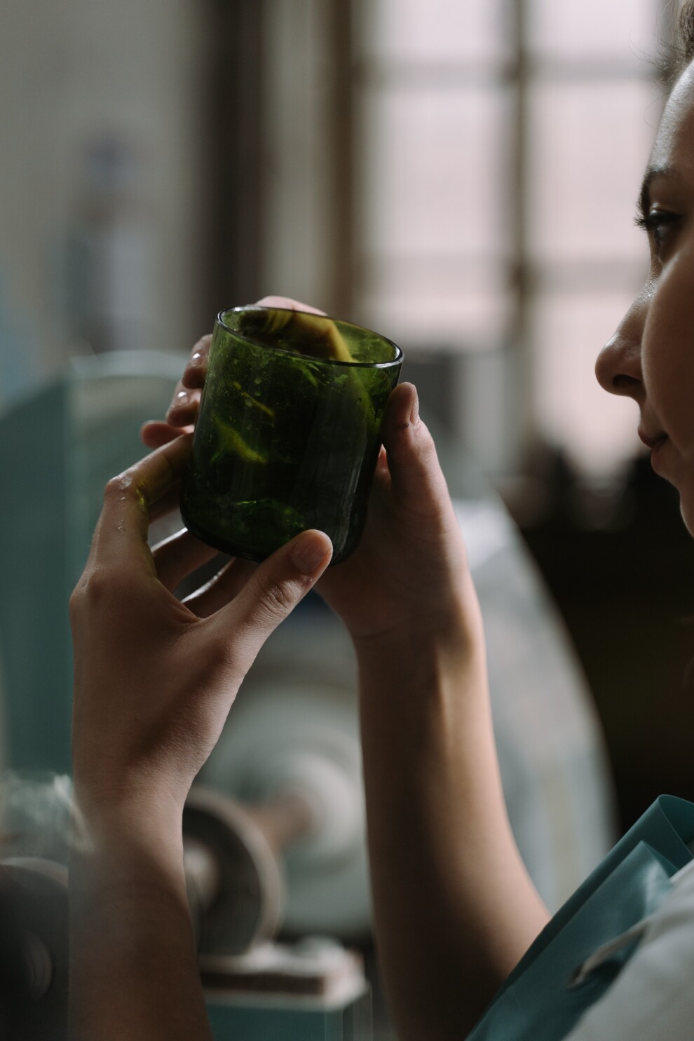 Стакан из зеленого стекла